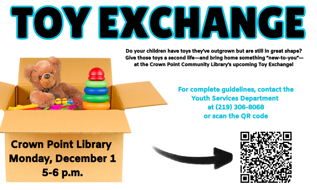Monday, December 1 • 5–6 p.m.Crown Point Community Library Do your children have toys they’ve outgrown but are still in …read more
