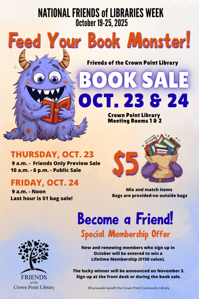 Get ready for a MONSTER of a sale at the Friends of the Crown Point Library Fall Book Sale!